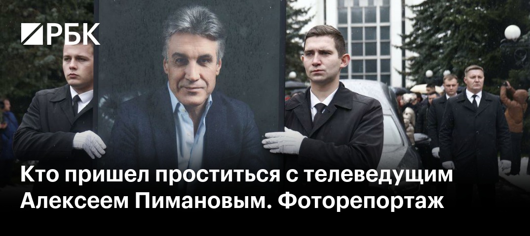 В Москве простились с телеведущим Алексеем Пимановым. Он умер 23 апреля в возрасте 64 лет. Как прошла церемония — в фоторепортаже РБК