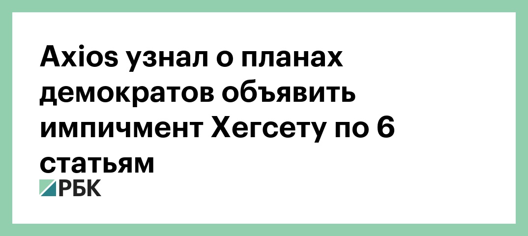Демократы в палате представителей США вносят резолюцию об импичменте министру обороны Питу Хегсету, пишет портал Axios. Она включает шесть статей обвинения.