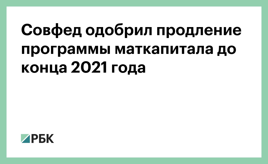 Совет Федерации одобрил закон, продлевающий программу материнского капитала до конца 2021 года. Об этом сообщает корреспондент РБК.