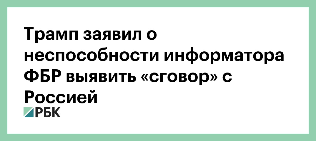«Шпион был в штабе в самом начале [избирательной] кампании и все же никогда не сообщал о сговоре с Россией, потому что не было никакого сговора. Он был там только для того, чтобы шпионить по политическим причинам и помочь жуликоватой Хиллари [Клинтон] выиграть — так же, как они сделали с [сенатором] Берни Сандерсом, которого обманули», — написал Трамп.