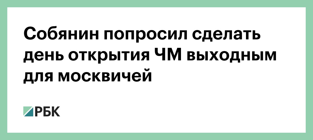 Мэр Москвы Сергей Собянин обратился к руководителям предприятий с просьбой дать своим сотрудникам выходной 14 июня, в день открытия чемпионата мира по футболу, передает «Интерфакс».