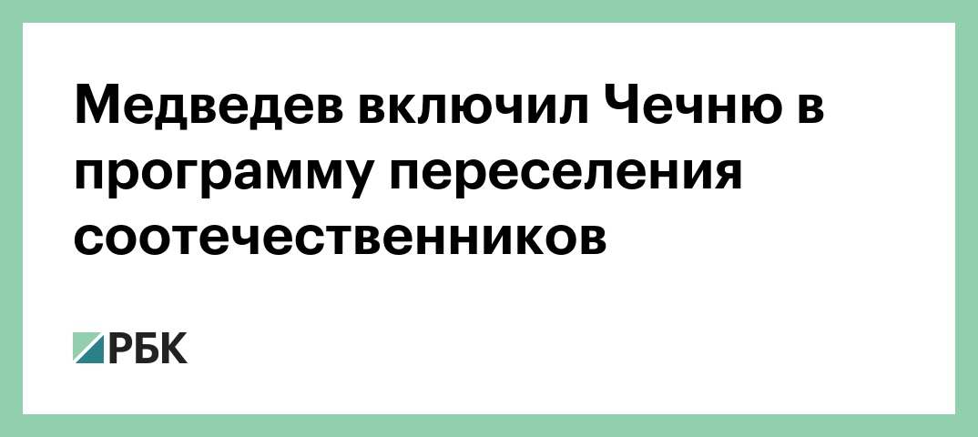 «Я подписал распоряжения правительства, которые впервые включают Карачаево-Черкесскую Республику и Чеченскую Республику в программу содействия переселению соотечественников из-за рубежа», — сказал российский премьер. По его словам, в течение трех лет, а именно с 2018 по 2020 год, в Чечню приедут 150 человек, а в КЧР — 375. Медведев отметил, что прежде всего это будут «высококвалифицированные специалисты и рабочие, специальности которых востребованы на региональном рынке труда».
