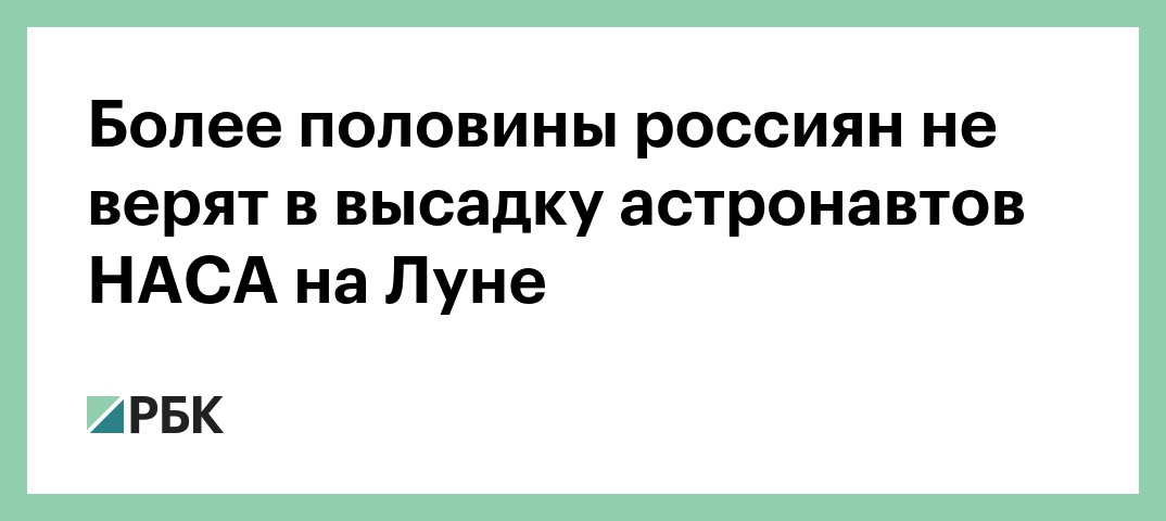Более половины россиян (57%) не верят, что в 1969 году американские астронавты высадились на Луне, и полагают, что власти США фальсифицировали материалы об экспедиции. Об этом свидетельствуют результаты опроса ВЦИОМа, поступившие в РБК.