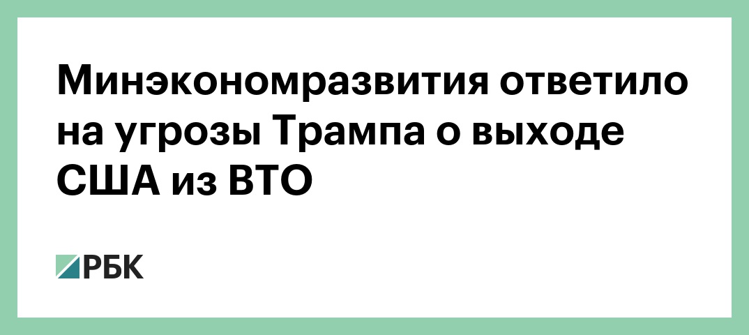 Министерство экономического развития России отреагировало на заявление американского президента Дональда Трампа, в котором он пригрозил выходом США из Всемирной торговой организации (ВТО). Об этом говорится в сообщении пресс-службы Минэкономразвития (МЭР), поступившем в РБК.