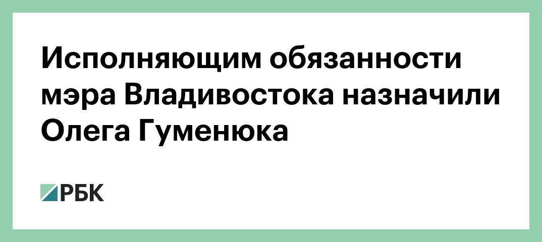 Исполняющим обязанности главы Владивостока назначен Олег Гуменюк. Об этом сообщается на сайте администрации города.