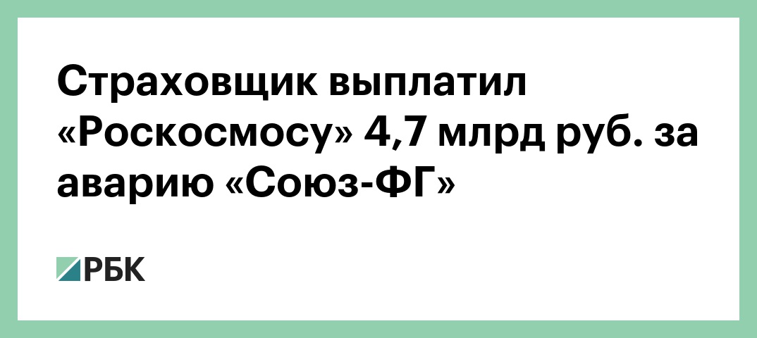 Страховая компания «Согласие» выплатила «Роскосмосу» 4,655 млрд руб. за аварию ракеты-носителя «Союз-ФГ» и пилотируемого корабля «Союз МС-10», говорится в сообщении компании.