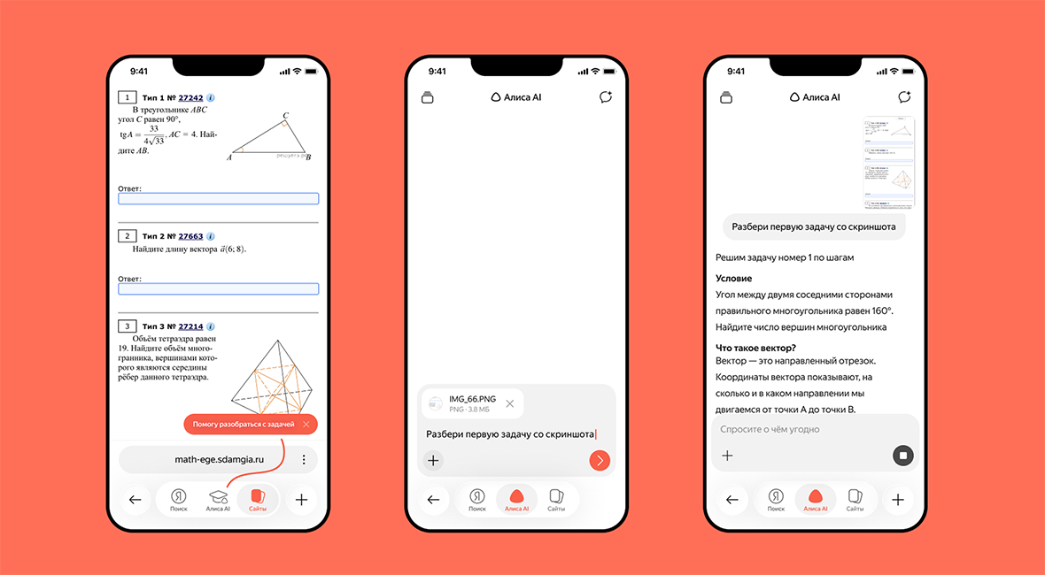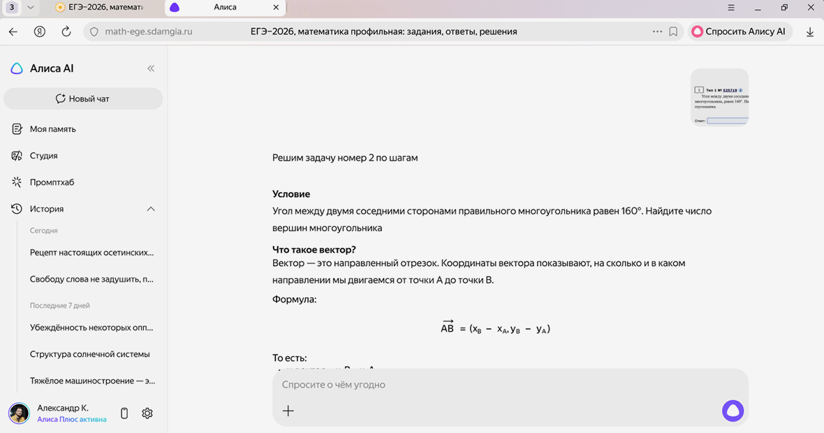 Нейросеть доступна в «Яндекс Браузере» и приложении «Яндекса», функция работает на сайтах, которые помогают готовиться к школьным экзаменам. В браузере она открывается в режиме сплитвью: пользователь может нажать кнопку «Спросить Алису AI» и выбрать «Разобрать задание» или написать запрос самостоятельно.