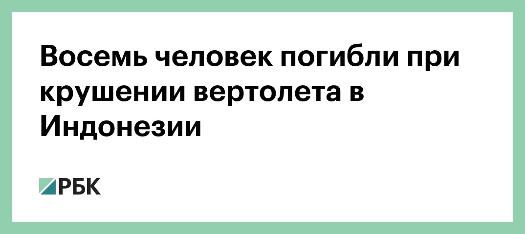Вертолет Airbus H130 с шестью пассажирами и двумя членами экипажа на борту разбился в индонезийской провинции Западный Калимантан, все погибли, сообщает Reuters со ссылкой на местные власти.