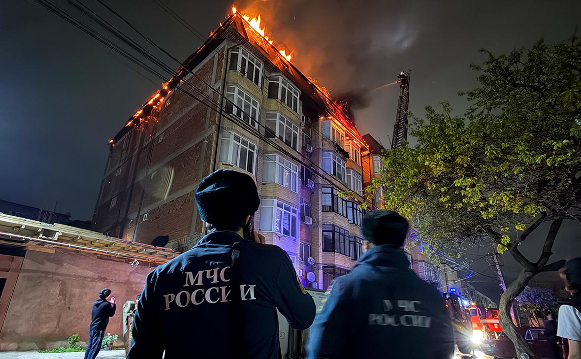В Махачкале загорелась крыша многоквартирного дома на площади 600 кв. м