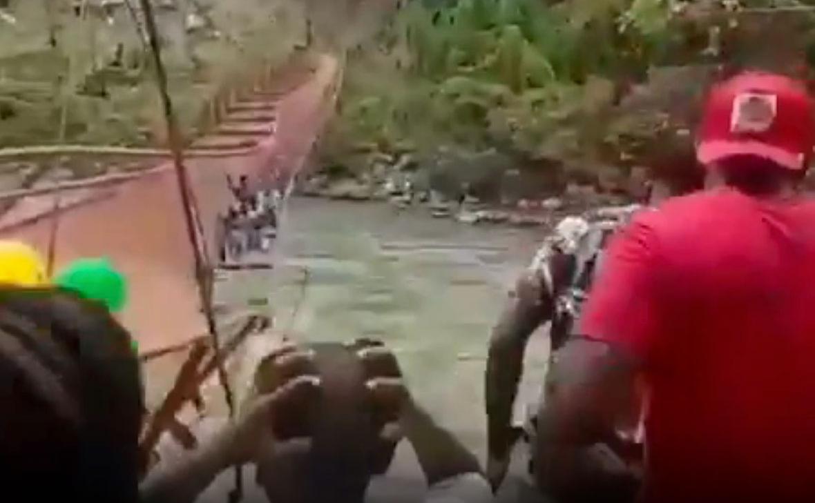 После церемонии открытия мэр города Маринела Паломеке Серна вместе с жителями пошел по мосту. В этот момент конструкция начала раскачиваться, а затем оборвались тросы. В результате люди, находившиеся на мосту, упали в реку.