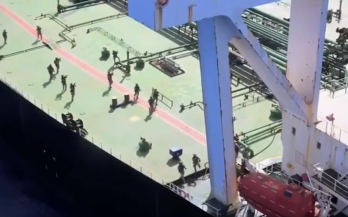 Судно задержали в ночь на 23 апреля. На видео, которое опубликовал Пентагон, запечатлен момент высадки десанта. На кадрах видно, как к танкеру подлетают два вертолета, после чего на борт судна спускаются военные.