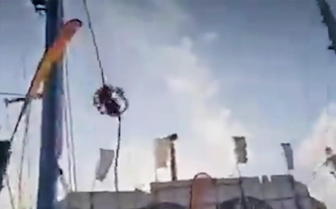 В Испании оборвался один из тросов аттракциона. Видео