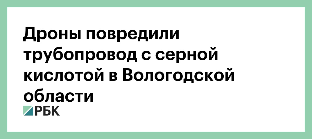 Дроны повредили трубопровод с серной кислотой в Вологодской области