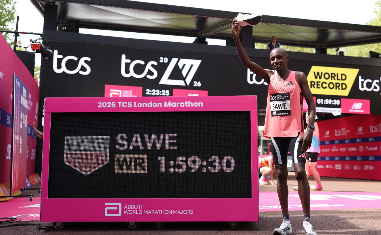 Кениец Себастьян Саве установил новый мировой рекорд на Лондонском марафоне, преодолев дистанцию 42 км 195 м за 1 час 59 минут 30 секунд и выиграв забег. Саве стал первым атлетом, преодолевшим марафонскую дистанцию менее чем за два часа.