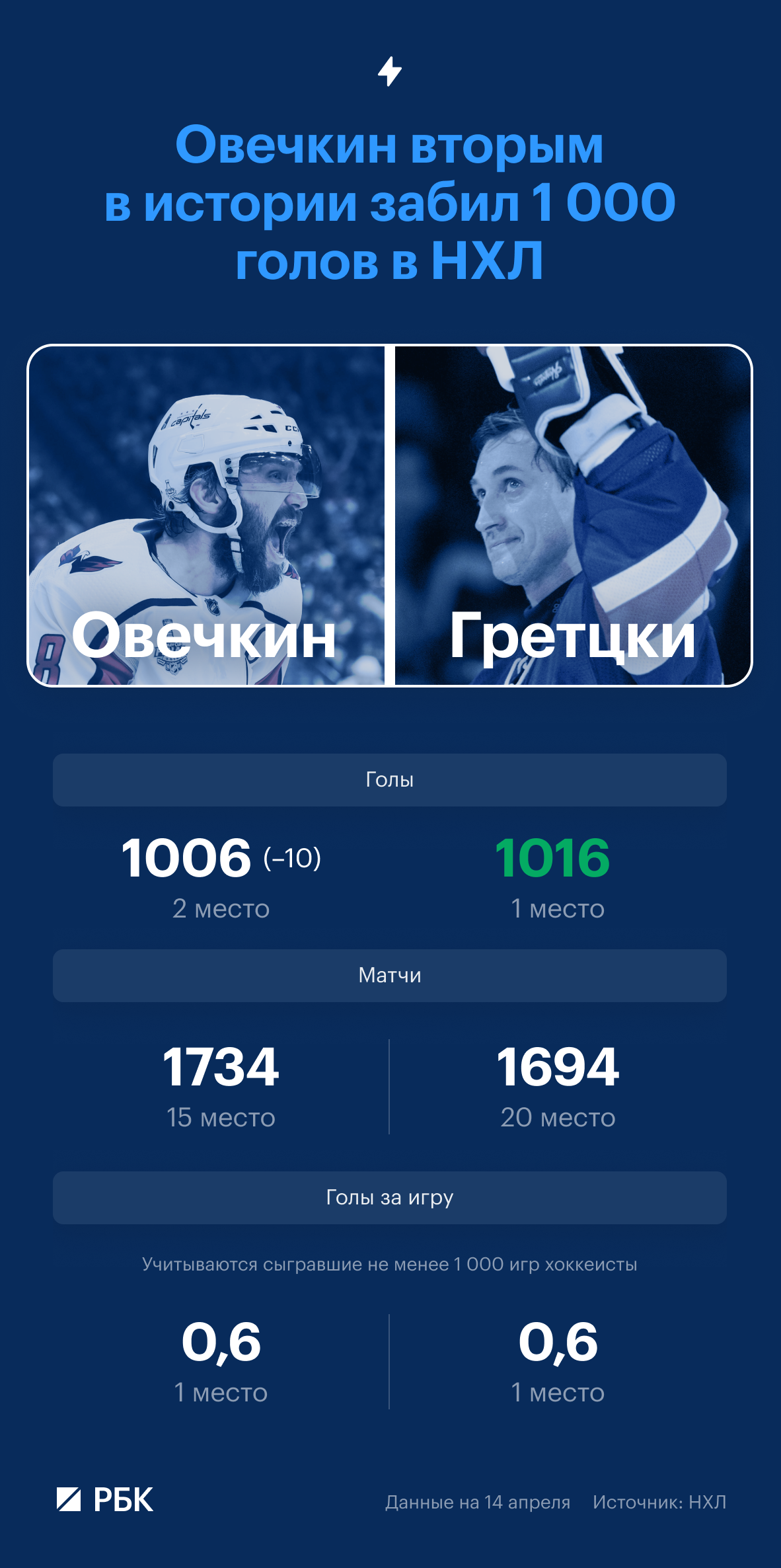 Александр Овечкин стал вторым игроком в истории НХЛ, достигшим отметки в 1000 шайб с учетом плей-офф. В прошлом сезоне Овечкин побил главный рекорд НХЛ, став лучшим снайпером в истории регулярных чемпионатов. Теперь 40-летний россиянин стремится превзойти следующее достижение великого Уэйна Гретцки — по числу шайб за карьеру с учетом плей-офф (1016).